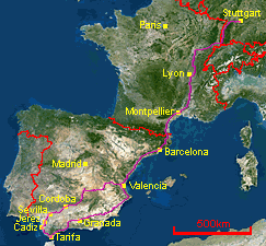In Spanien angekommen tankte ich erst einmal voll zu einem wohltuend niedrigem Preis (über 0.3 Euro pro Liter niedriger als in Deutschland und Frankreich). Danach näherten wir uns schnell Barcelona.